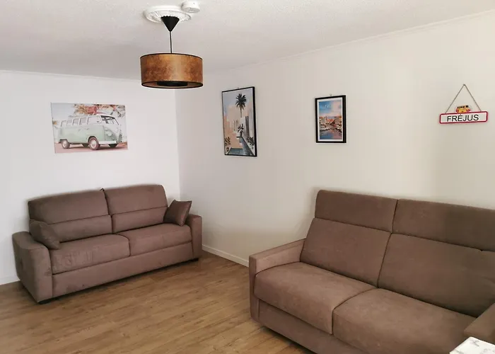 A fully-equipped kitchen is ideal for preparing home-cooked meals. The nearest bus stop to Frejus Plage apartment is Salle du Sextant, which is merely 600 metres away.